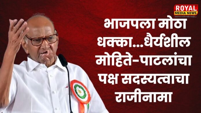 लोकसभा निवडणुकीचा प्रचार, सभा, मिरवणुका सुरु झालेल्या असताना भारतीय जनता पक्षाला सोलापूरमध्ये मोठे खिंडार पडले आहे. माढा लोकसभेसाठी भाजपने रणजितसिंह नाईक निंबाळकर यांना उमेदवारी जाहीर केली आहे. यामुळे नाराज असलेले धैर्यशील राजसिंह मोहिते-पाटील यांनी भाजपच्या सदस्यत्वासह सर्व पदांचा राजीनामा दिला आहे. नुकतीच त्यांनी राष्ट्रवादी काँग्रेस शरद पवार पक्षाचे सर्वेसर्वा शरद पवार यांची पुण्यात भेट घेतली होती. ते राष्ट्रवादी शरद पवार गटाचे माढा लोकसभा मतदारसंघातून उमेदवार असण्याची शक्यता व्यक्त केली जात आहे.