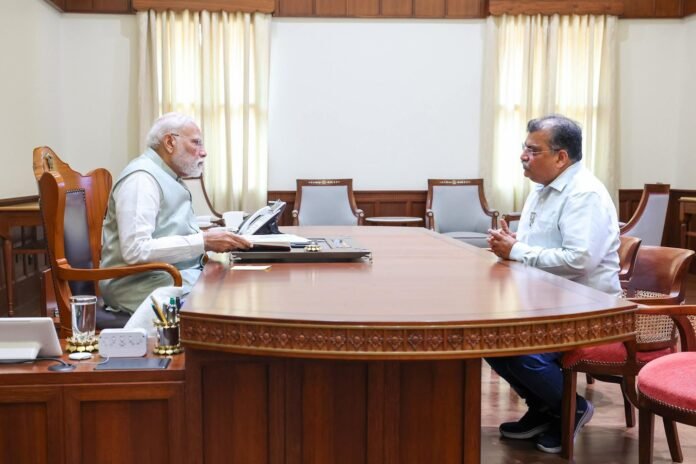दिल्ली – भारतीय जनता पक्षाचे महाराष्ट्र प्रदेशाध्यक्ष रविंद्र चव्हाण यांनी आज नवी दिल्ली येथे पंतप्रधान नरेंद्र मोदी यांची सदिच्छा भेट घेतली. या भेटीत महाराष्ट्र भाजपची संघटनात्मक घडामोडी, आगामी कार्यक्रमांचे नियोजन व पक्षवाढीची दिशा याबाबत सविस्तर माहिती चव्हाण यांनी पंतप्रधान मोदी यांना दिली.
