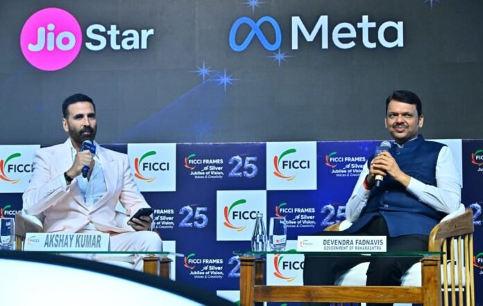 फिक्की फ्रेम्स – अ सिल्वर जुबली ऑफ व्हिजन’ कार्यक्रमात अभिनेते अक्षय कुमार यांनी त्यांची मुलाखत घेतली. यावेळी मराठी व हिंदी चित्रपटसृष्टी आणि चित्रनगरीच्या विकासाबाबत प्रश्नांना त्यांनी उत्तरे दिली. मुख्यमंत्री देवेंद्र फडणवीस म्हणाले, सिनेमाच्या आणि चित्रपट निर्मितीच्या क्षेत्रात मुंबईचे महत्त्वपूर्ण स्थान असून येथे चित्रपट उद्योगासाठी आवश्यक परिसंस्था विकसित झाली आहे. सळसळत्या उत्साहाने भारावलेल्या या क्षेत्रातील निर्मितीपासून प्रदर्शनापर्यंत आवश्यक संकलन, चित्रीकरण याचे संबंधित तंत्रज्ञान याचा मोठा विस्तार झाला आहे. मुंबई शहरालगत कर्जत, मीरा-भाईंदर असे अनेक ठिकाणी चित्रीकरणासाठी स्टुडिओ निर्माण झाले आहेत. विखुरलेल्या स्वरूपात असलेल्या या चित्रपट उद्योगाला आधुनिक रूप देण्याचे काम येत्या काळात चित्रनगरीच्या माध्यमातून केले जाईल. चित्रपट क्षेत्रातील विखुरलेल्या घटकांसाठी सुविधा व कायापालटाद्वारे चित्रनगरीला आयकॉनिक स्वरूप देण्यासाठी पावले टाकली जात आहेत. मुख्यमंत्री देवेंद्र फडणवीस म्हणाले, आशयघन व दर्जेदार मराठी चित्रपट आणि मराठी नाटके दर्शकांच्या मनावर अधिराज्य गाजवत असून त्यातील प्रयोगशिलता आणि अभिनव निर्मितीमुळे सक्षम ठरत आहे. मराठी चित्रपटाला सिनेमागृह न मिळण्याचा काळ मागे पडला असून आता एकाच वेळी दोन-दोन मराठी सिनेमे प्रदर्शित होतात आणि हाउसफुल होतात असे सांगून नटरंग, सखाराम बाईंडर यासह आताच्या दशावतार या चित्रपटांचा उल्लेख त्यांनी केला. यावेळी त्यांनी मुंबई शहरातील रस्ते विकास कामे, पोलीस दल, पायाभूत सुविधांची कामे, भुयारी मार्ग, मेट्रो, शहरातील वाहतूक व्यवस्था या अनुषंगाने प्रश्नांची उत्तरे देत, मुंबई शहरातील विकास कामे पूर्ण झाल्यानंतर 59 मिनिटात शहरातील एका ठिकाणावरून दुसऱ्या कोणत्याही ठिकाणावर जाता येईल, मुंबईकरांच्या प्रवास वेळेत बचत होईल, असे सांगितले.