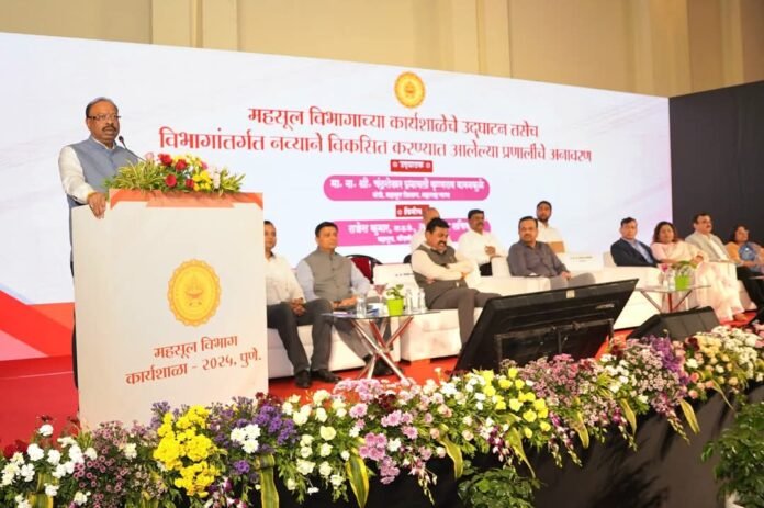 कार्यशाळेस अप्पर मुख्य सचिव राजेश कुमार, पुणे विभागीय आयुक्त चंद्रकांत पुलकुंडवार, नोंदणी महानिरीक्षक रवींद्र बिनवडे, जमाबंदी आयुक्त सुहास दिवसे, कोकण विभागीय आयुक्त विजय सूर्यवंशी, नागपूर विभागीय आयुक्त विजयालक्ष्मी बिद्री, अमरावती विभागीय आयुक्त श्वेता सिंघल यांच्यासह सर्व जिल्हाधिकारी, अप्पर जिल्हाधिकारी आदी उपस्थित होते.पुढील दोन वर्षात एकाही व्यक्तीची सुनावणी बाकी राहता कामा नये असा संकल्प करून महसूल विभागाचा देशात आदर्श निर्माण करावा. शेतकऱ्यांच्या आत्महत्या अतिशय दुर्दैवी आहेत.. आपण त्या थांबल्या पाहिजेत यासाठी काम करण्याची गरज आहे. शेतीला पाणी, पाणंद रस्ते, वीज देण्यासाठी पुढाकार घेऊन शेतकऱ्याला सुखी करण्याचे प्रयत्न होऊ द्या.आम्ही लोकप्रतिनिधी आहोत. जनतेला आम्ही उत्तरदायी आहोत. जनतेने दिलेली मतं ही आम्ही कर्ज समजतो. त्यासाठी जनतेला उत्तरदायी राहणे हे आमचं कर्तव्य आहे. महसूल विभागाने लोकाभिमुख निर्णय घेण्याची आवश्यकता आहे. कामात आधुनिकीकरण आणि ए आयचा वापर झाला तर महसूल विभाग अधिक चांगले काम करत आहे हे लक्षात येईल. कुटुंब प्रमुख म्हणून मुख्यमंत्री देवेंद्र फडणवीस आणि मी कायम तुमच्या पाठीशी आहे. आपण मिळालेली जबाबदारी ही केवळ जबाबदारी न समजता नाविन्यपूर्ण काम केले पाहिजे. आपल्या काळात एखादे तरी काम चांगले जनतेच्या हिताचे झाले पाहिजे असा उद्देश ठेवा. अनेक किचकट कायदे सोपे केले पाहिजेत, कायदा करताना विधिमंडळातही महसूल विभागावर विश्वास दाखवला जातो.