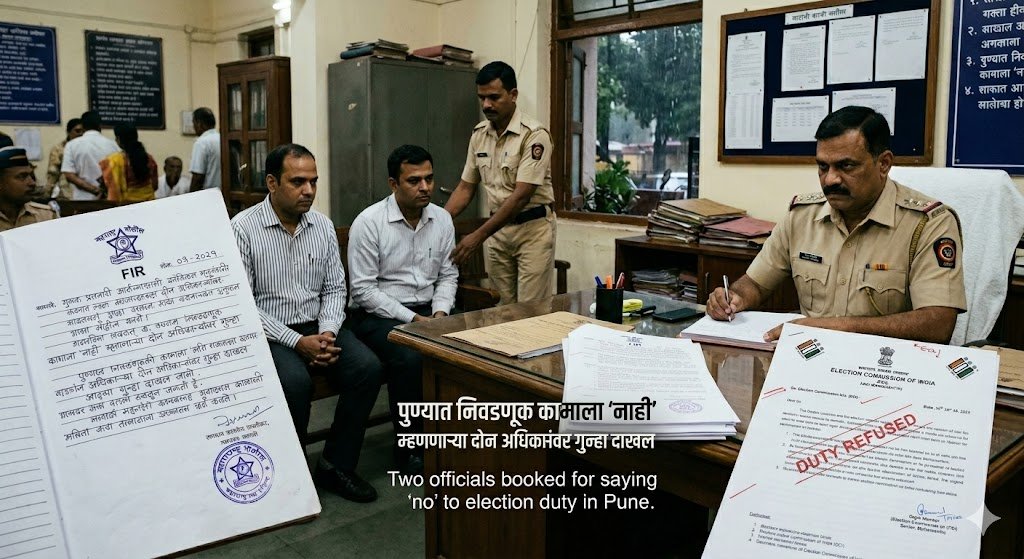 पुणे कॅन्टोन्मेंट विधानसभा मतदार संघातील यादी भाग क्र. २२८ चे मतदान केंद्रस्तरीय अधिकारी आणि यादी भाग क्र. २३० चे मतदान केंद्रस्तरीय अधिकारी हे काम करीत नसल्याचे निदर्शनास आले होते. त्यांना याबाबत वारंवार कारणे दाखवा नोटीसा देऊनही कामात सहभागी न झाल्याने उपजिल्हाधिकारी तथा मतदार नोंदणी अधिकारी सिद्धार्थ भंडारे यांनी त्यांच्यावर कारवाई करण्याचे निर्देश दिले होते. त्यानुसार गुन्हा नोंदविण्यात आला आहे.
