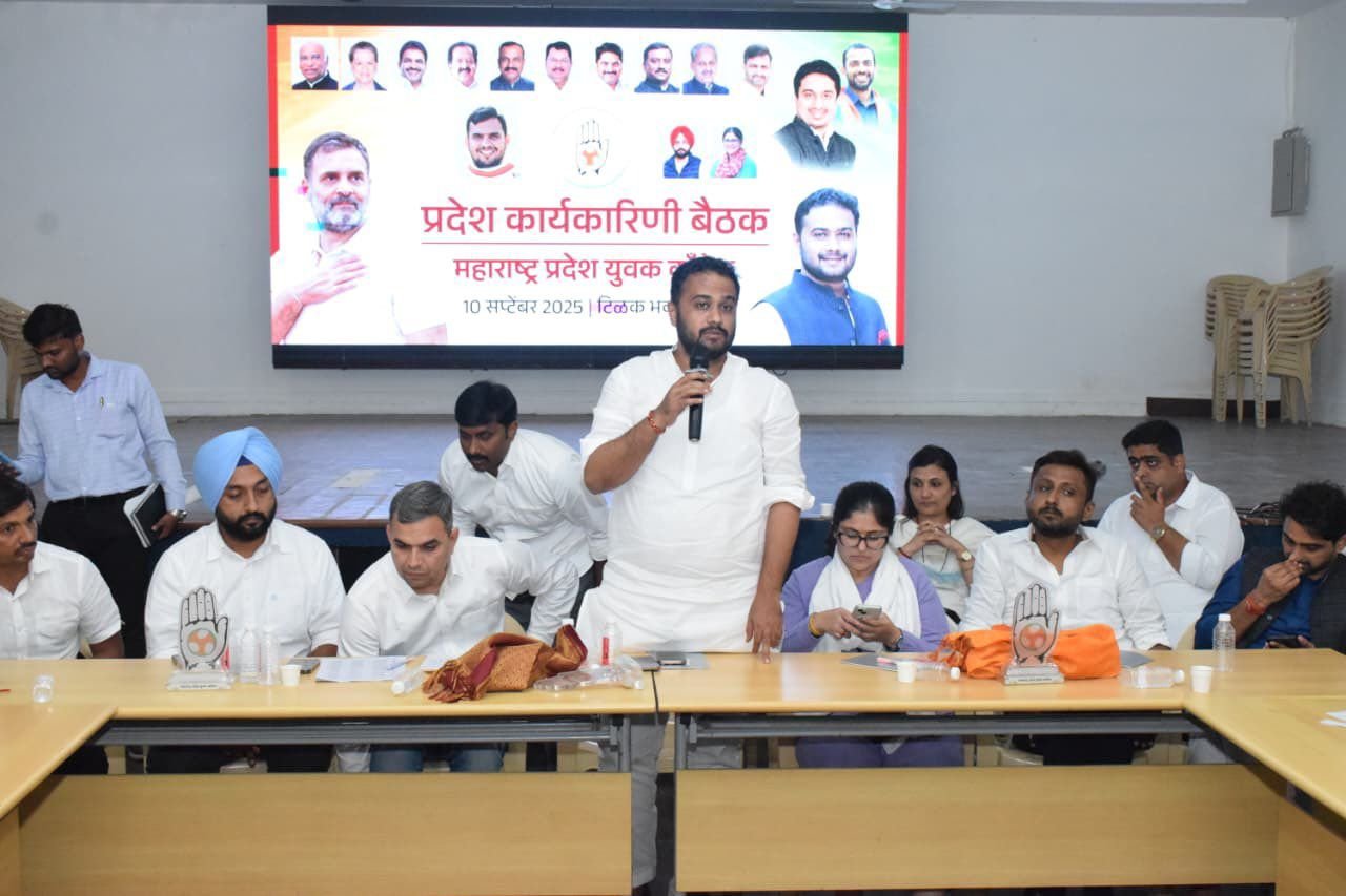 मुंबईतील टिळक भवन येथे महाराष्ट्र प्रदेश युवक काँग्रेसची दोन दिवसीय प्रदेश कार्यकारिणी बैठक संपन्न झाली. या बैठकीला भारतीय युवक काँग्रेसचे सरचिटणीस व महाराष्ट्र प्रभारी अजय छिकारा, प्रदेश युवक काँग्रेसचे नवनियुक अध्यक्ष शिवराज मोरे, सहप्रभारी नवज्योत सिंग संधू जी, शाम्भवी शुक्ला जी यांनी उपस्थित पदाधिकाऱ्यांना मार्गदर्शन केले. मागील काळातील कामगिरीचा आढावा घेत, आगामी काळातील युवक काँग्रेसच्या कामकाजाची रूपरेषा निश्चित करण्यात आली.यावळी बोलताना प्रभारी अजय छिकारा म्हणाले की, महाराष्ट्र युवक काँग्रेसने बूथ स्तरावर संघटन मजबूत करण्याचे काम हाती घेतले आहे. मतदार यादीतील गोंधळ आणि मतचोरीविरोधात युवक काँग्रेस लढा देईल. हा लढा लोकशाही मजबूत करण्यासाठी आहे.